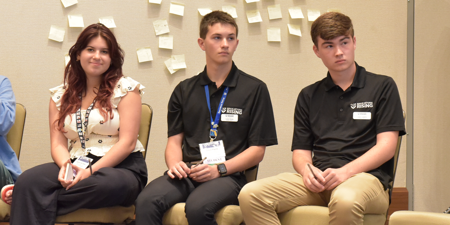 In these small groups, participants discussed the advantages and challenges of small-group instruction using the Educators Rising curriculum PowerPoint lesson slides as a guide. The slide deck is fully customizable depending on the needs of the instructor and students. For example, one of the participants suggested expanding the lesson objectives to include higher-order thinking skills that would encourage rising educators to create their own small-group protocols. Another offered a strategy of using a jigsaw activity as a formative assessment, so the instructor could tailor the rest of the lesson to better serve students.
