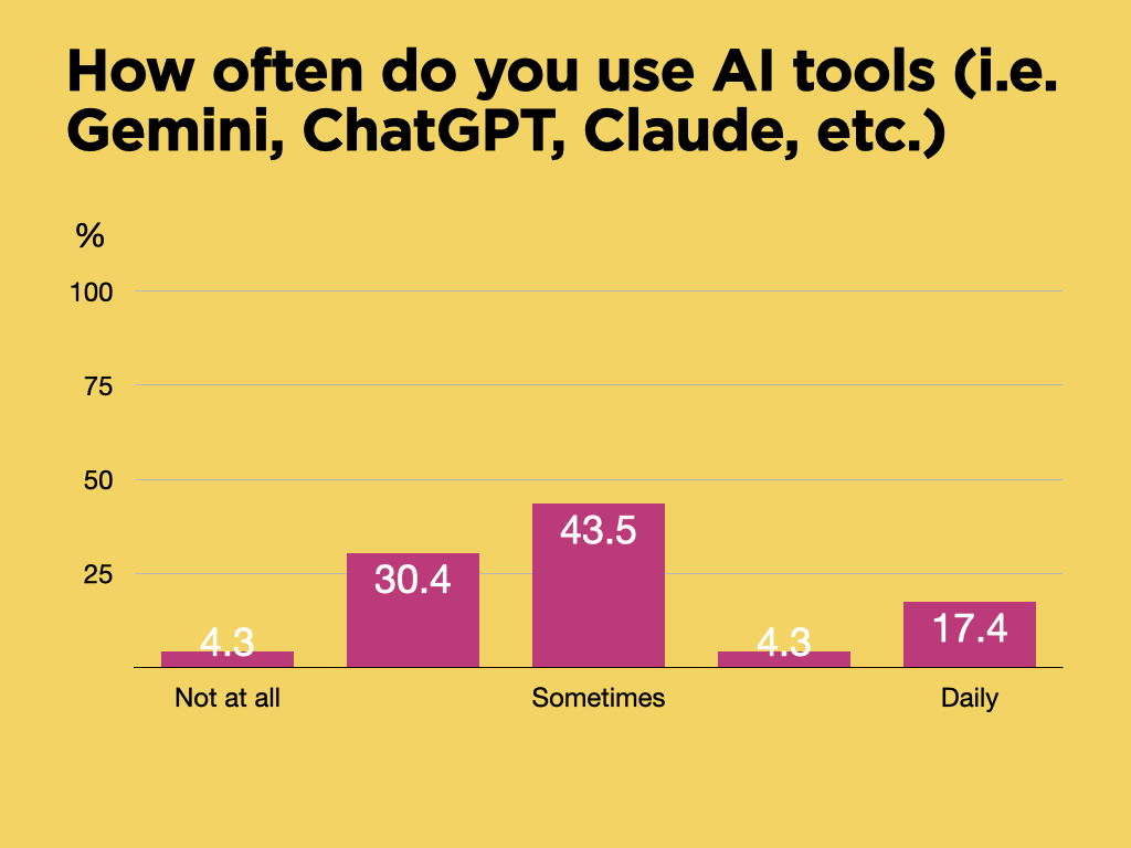 Our student leaders wanted to gain insight about school supplies. We sent these questions last week to a number of our members who agreed to be rapid responders for us. In addition, we asked a question related to the 2025 PDK Poll, about AI use.