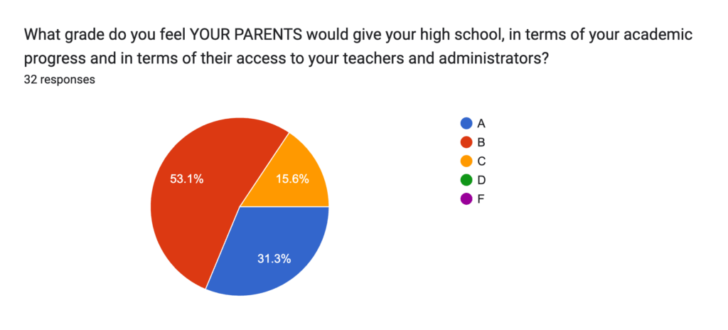 What grade do you feel YOUR PARENTS would give your high school, in terms of your academic progress and in terms of their access to your teachers and administrators?